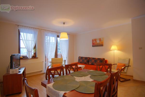 Apartament składa się z salonu wyposażonego w rozkładaną wersalkę dwuosobową oraz sprzęt RTV, telewizor LCD z TV-SAT oraz sprzęt grający. Sypialni w której znajduje się duże łoże małżeńskie oraz rozkładana wersalka dwuosobowa. Salon połączony z aneksem kuchennym wyposażonym w piekarnik, płytę elektryczną, mikrofalówkę, czajnik elektryczny, zmywarkę, garnki, talerze, kubki, szklanki i sztućce. Łazienka posiada kabinę prysznicową oraz pralkę. Gwarantujemy Państwu w miłej atmosferze wypoczynek, profesjonalną obsługę, pomoc w organizacji czasu i planowaniu wycieczek, pełną informację o walorach Szklarskiej Poręby i okolicy. – ZAPRASZAMY !!! . Cena 200/250 zł/doba, pobyty ponad 7 dni do negocjacji